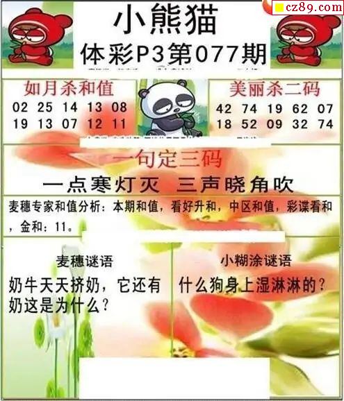 2025年077期牛彩网体彩P3画迷图谜汇总分享