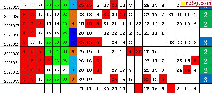 25年034期飞向阳光福彩双色球预测图表汇总