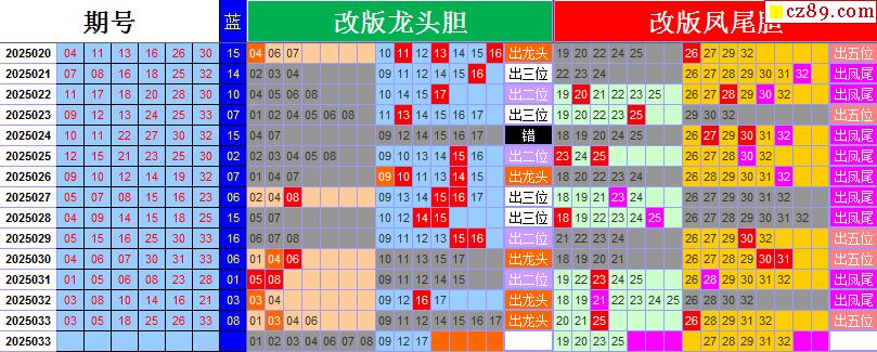 25年147期秋雨龙头凤尾走势图表