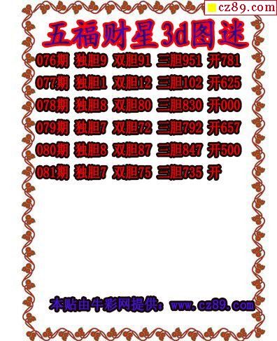 福彩3D2025329期 祁连牧哥百财纳福胆码图谜推荐