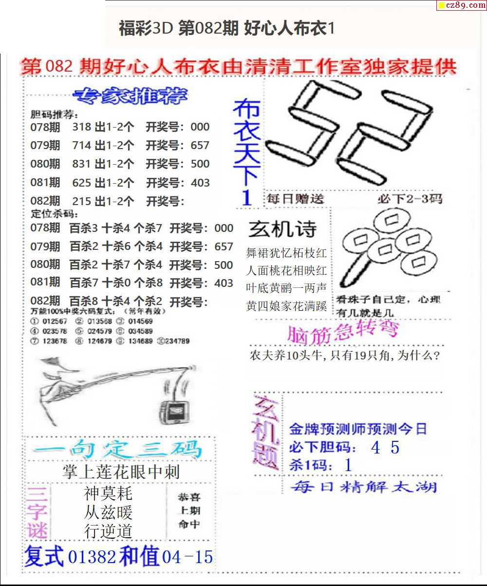 老夫子布衣2025340期3d图谜