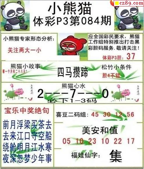 2025年084期牛彩网体彩P3画迷图谜汇总分享