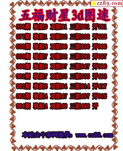 五福财星三胆2025332期3d图谜(原创)