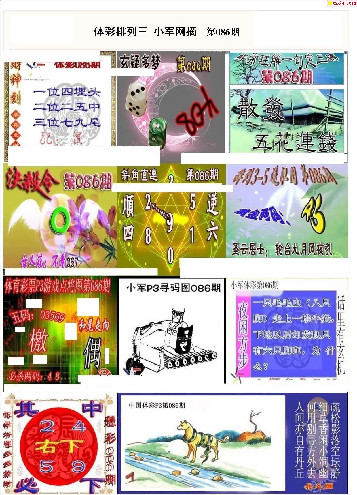 2025年086期牛彩网体彩P3画迷图谜汇总分享