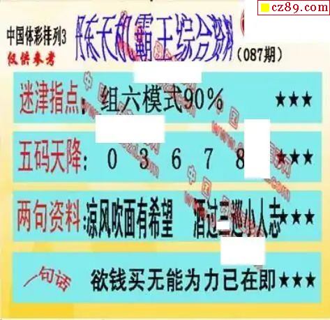 2025年087期牛彩网体彩P3画迷图谜汇总分享