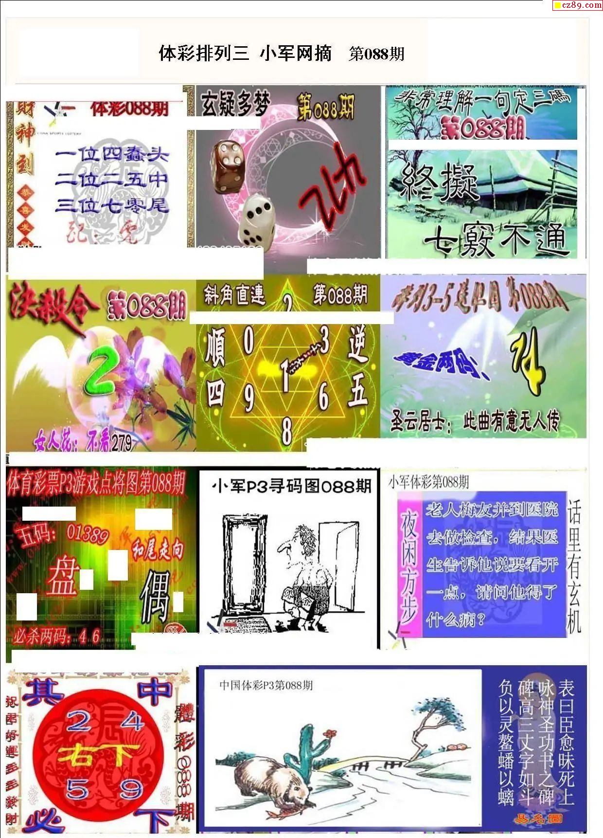 2025年088期牛彩网体彩P3画迷图谜汇总分享