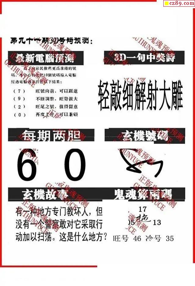 牛彩版3D字谜彩报图25年328期打印版
