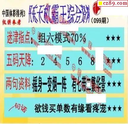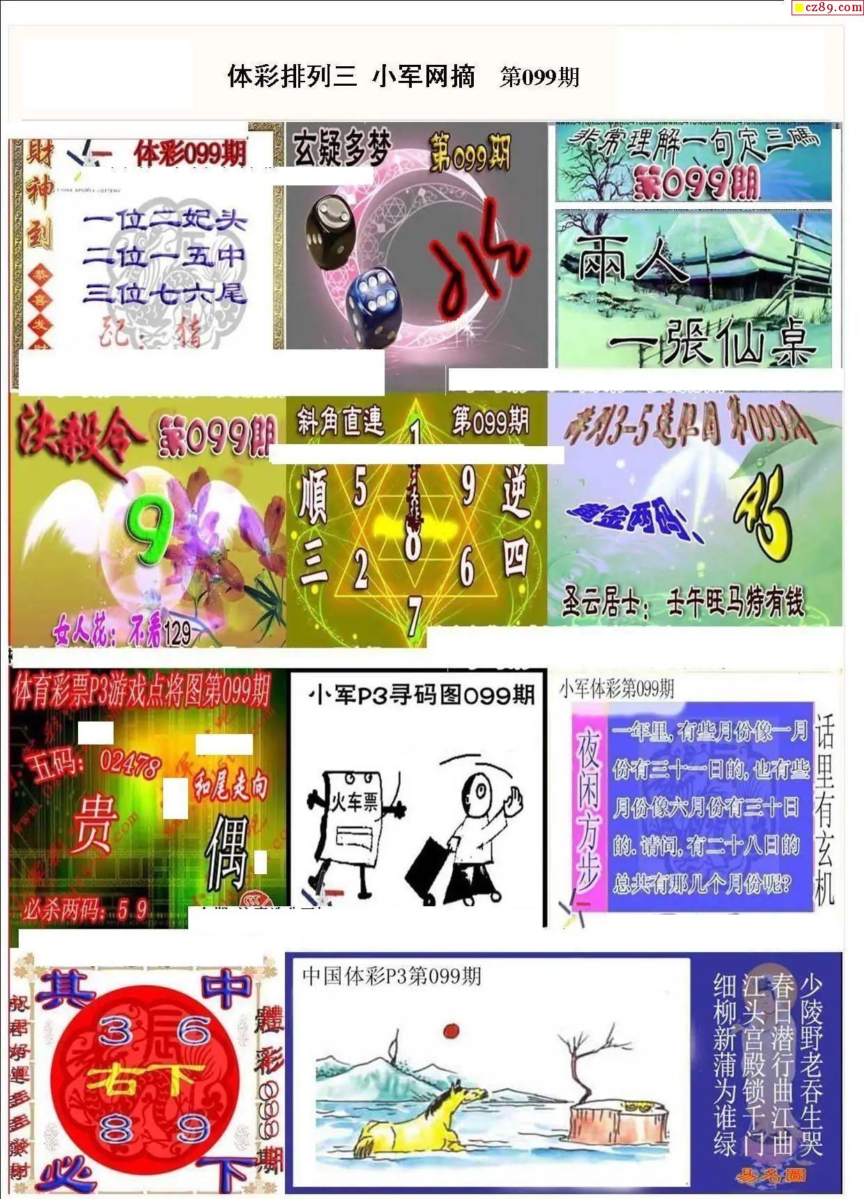 2025年099期牛彩网体彩P3画迷图谜汇总分享