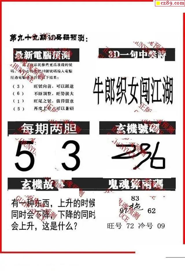 牛彩版3D字谜彩报图25年334期打印版