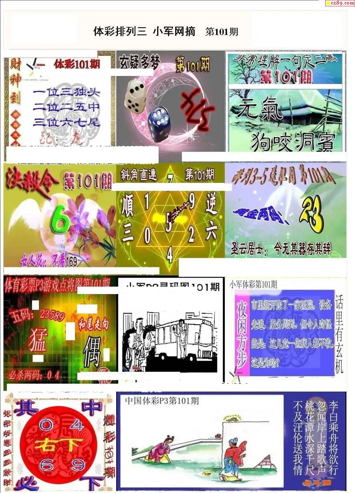 2025年101期牛彩网体彩P3画迷图谜汇总分享