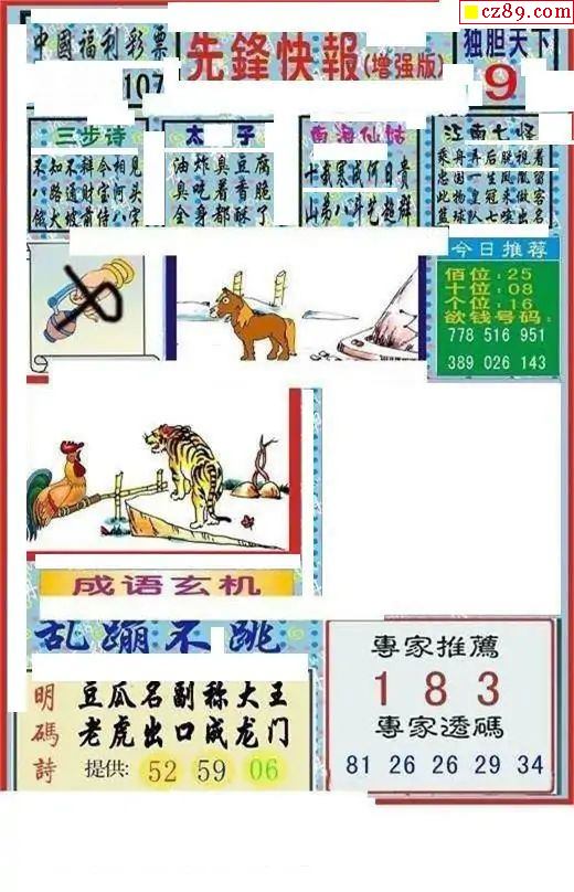 牛彩版3D字谜彩报图25年330期打印版