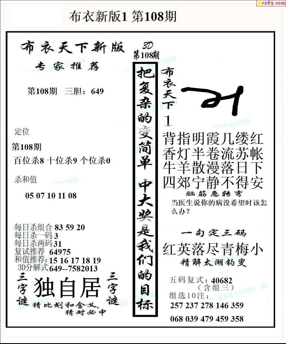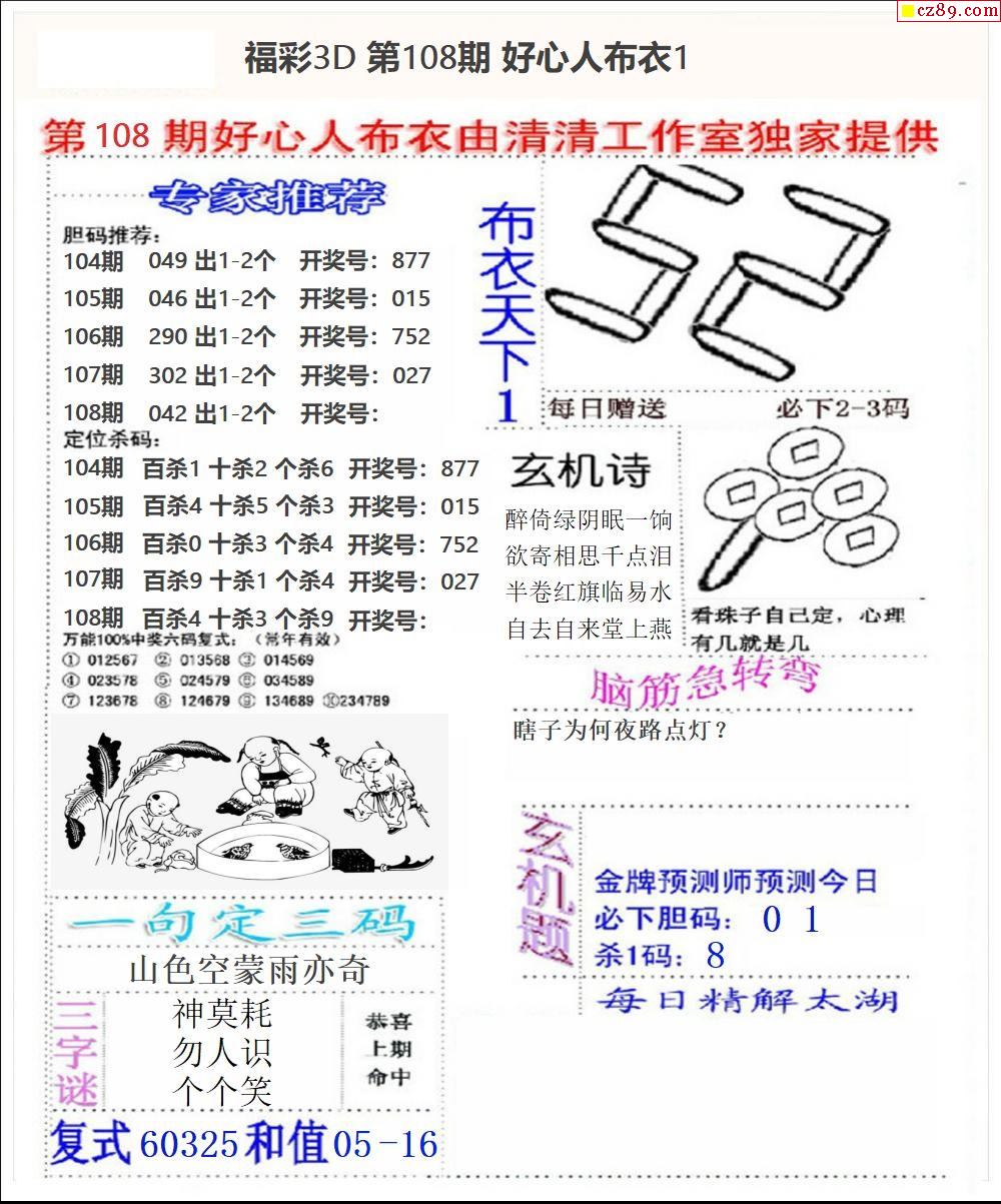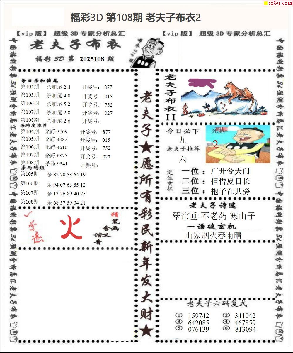 福彩3D2025329期 祁连牧哥百财纳福胆码图谜推荐