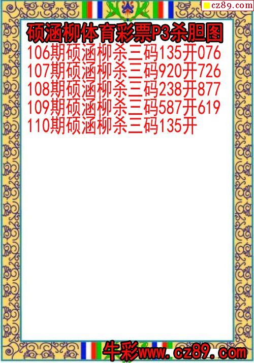 25年332期硕涵柳体育彩票P3杀胆图