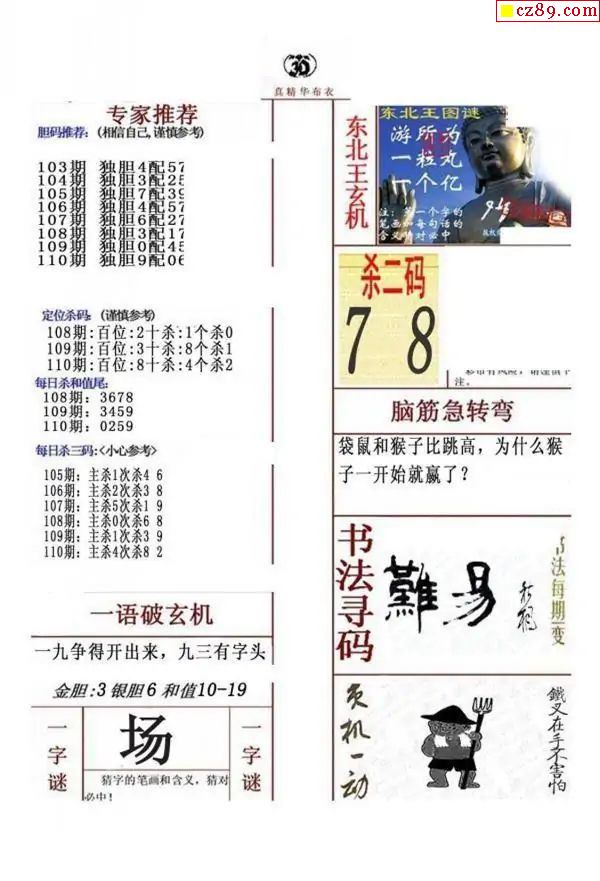牛彩版3D字谜彩报图25年331期打印版