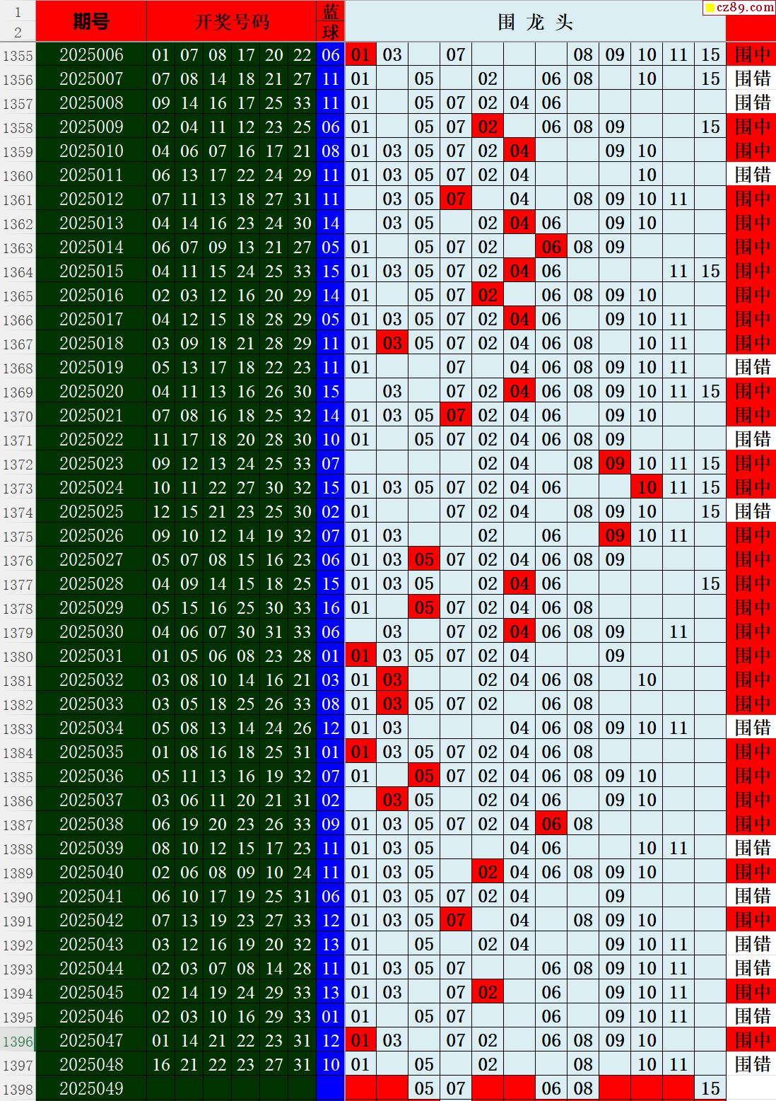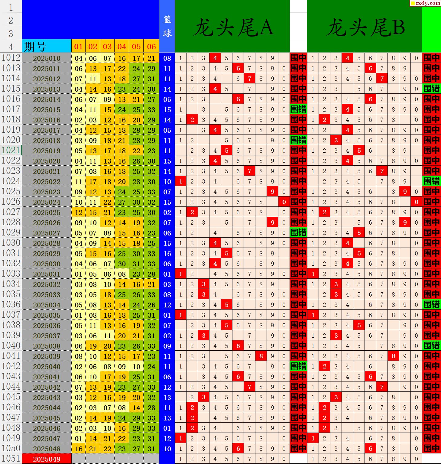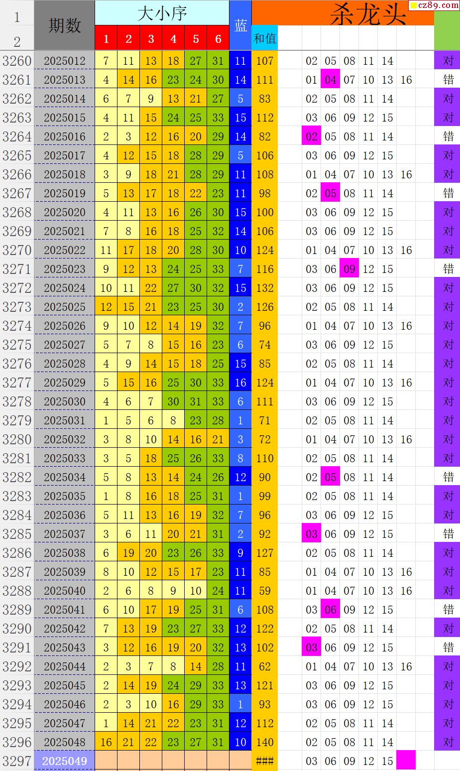 25年049期秋雨龙头凤尾走势图表