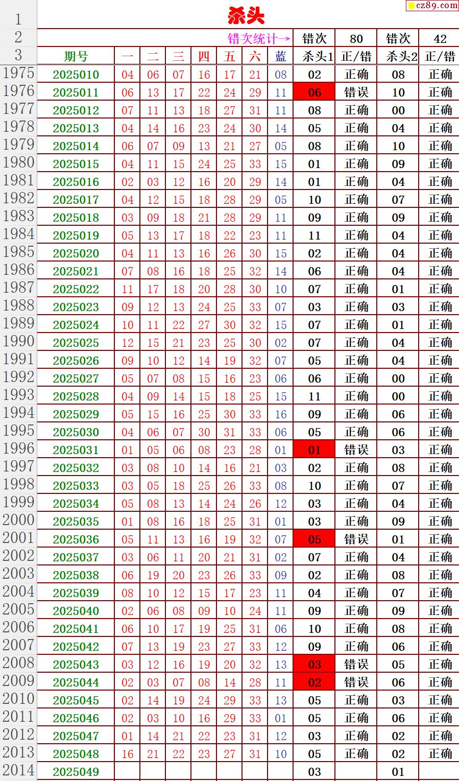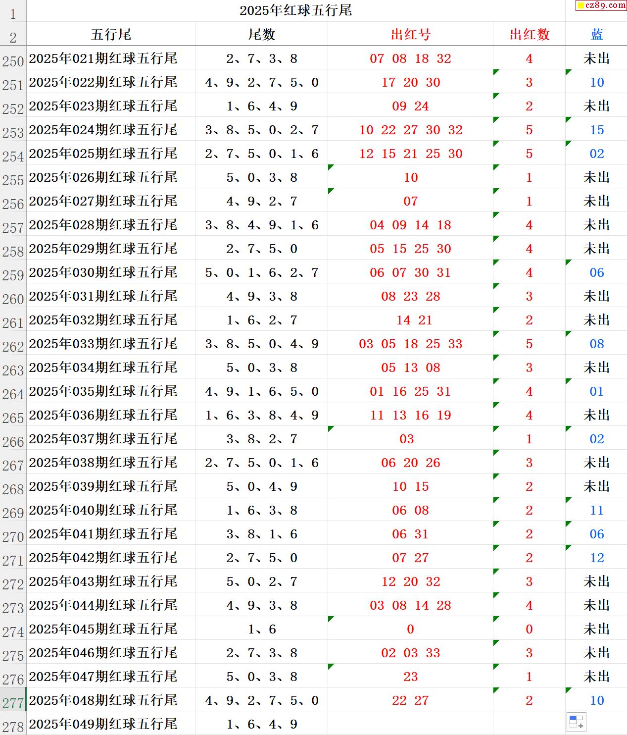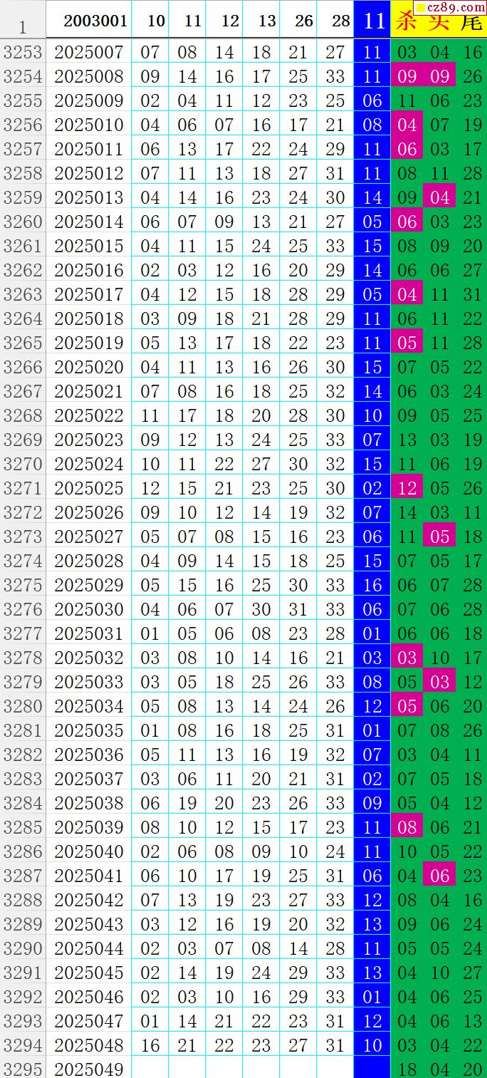 25年049期秋雨龙头凤尾走势图表
