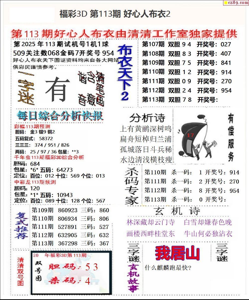 2025113期3d字谜图谜总汇