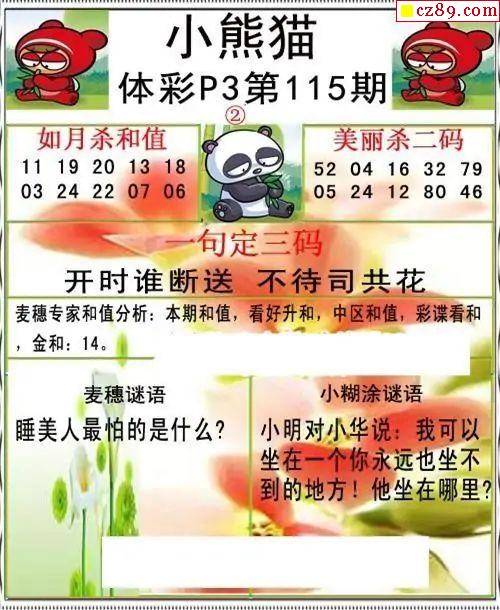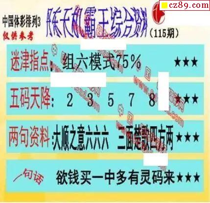 2025年115期牛彩网体彩P3画迷图谜汇总分享