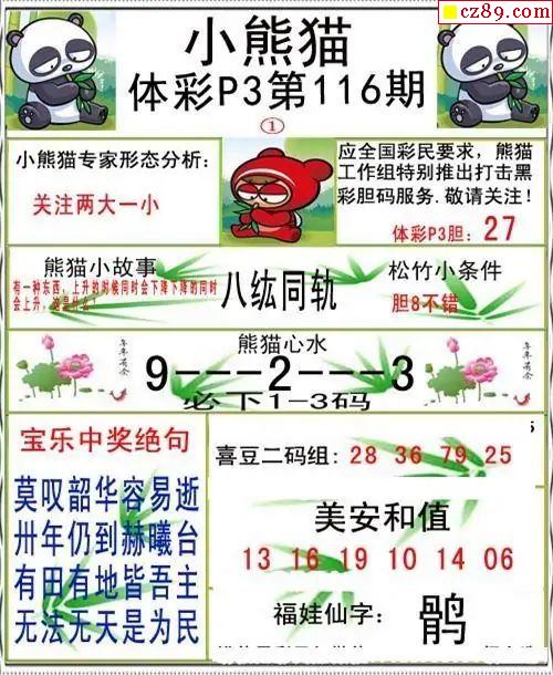 小熊猫2025334期体彩P3图谜