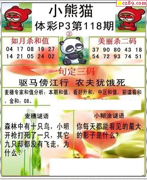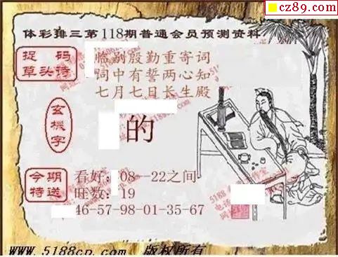 2025年118期牛彩网体彩P3画迷图谜汇总分享