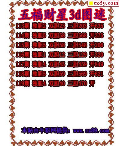 福彩3D2025332期 祁连牧哥百财纳福胆码图谜推荐