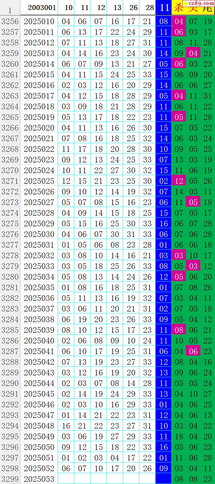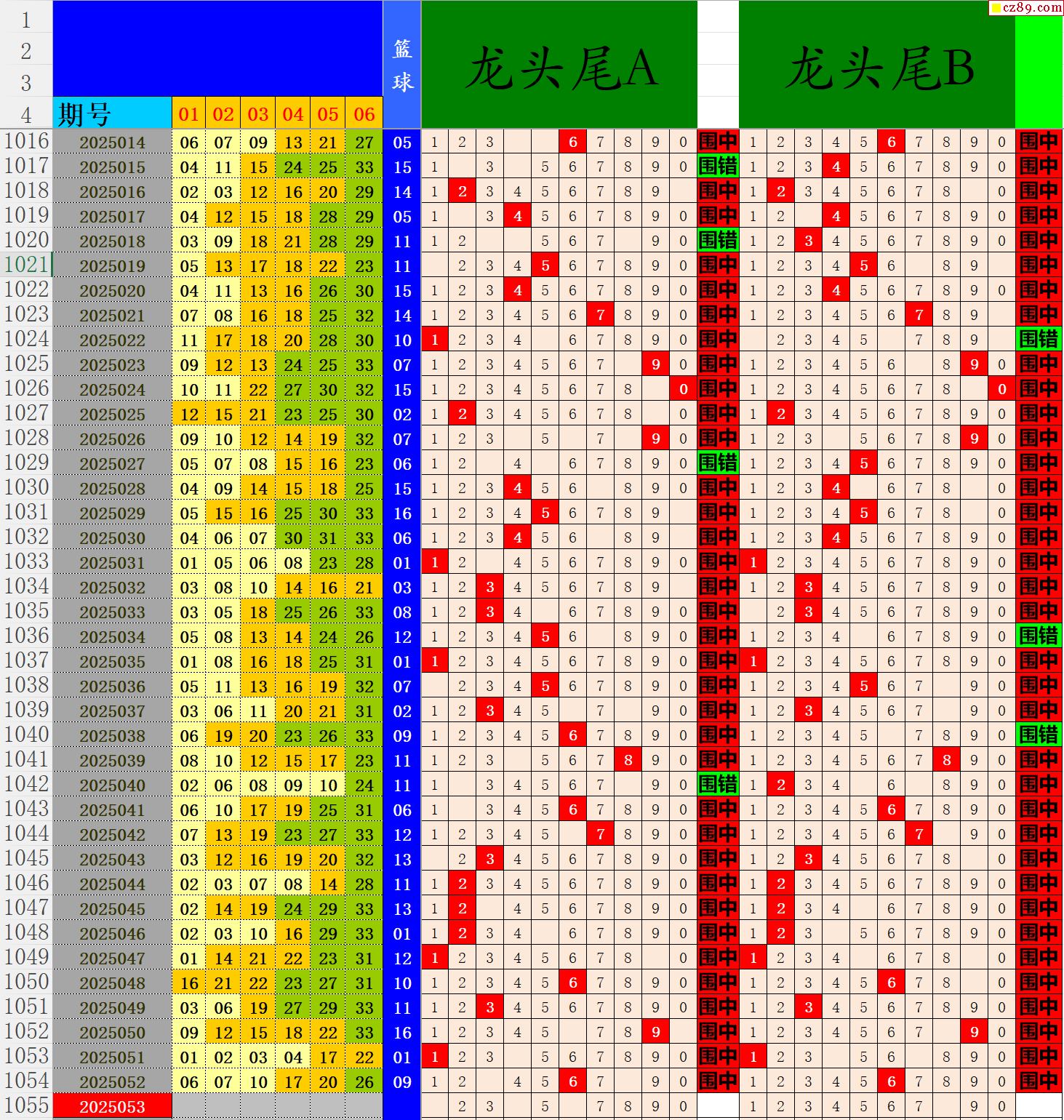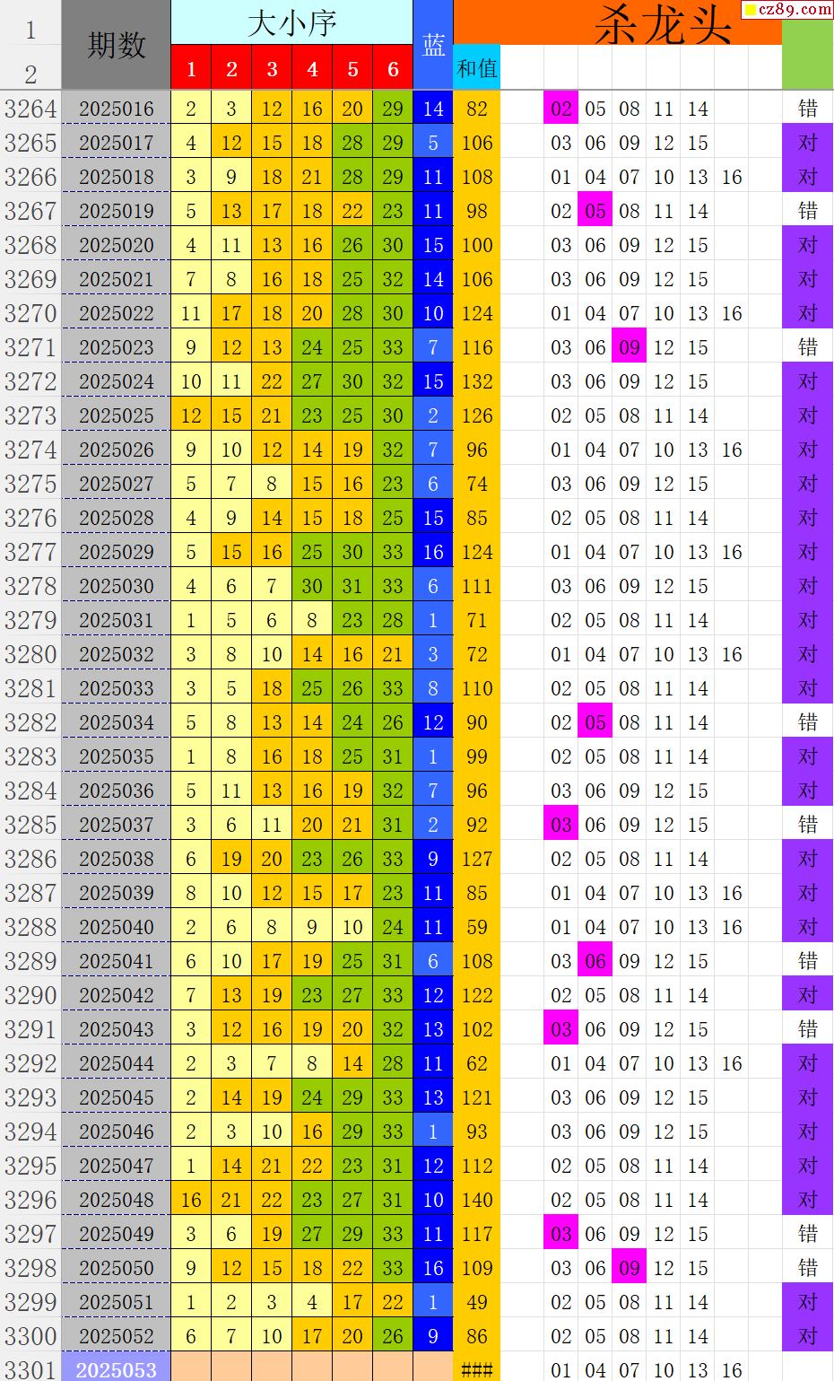 25年053期秋雨龙头凤尾走势图表