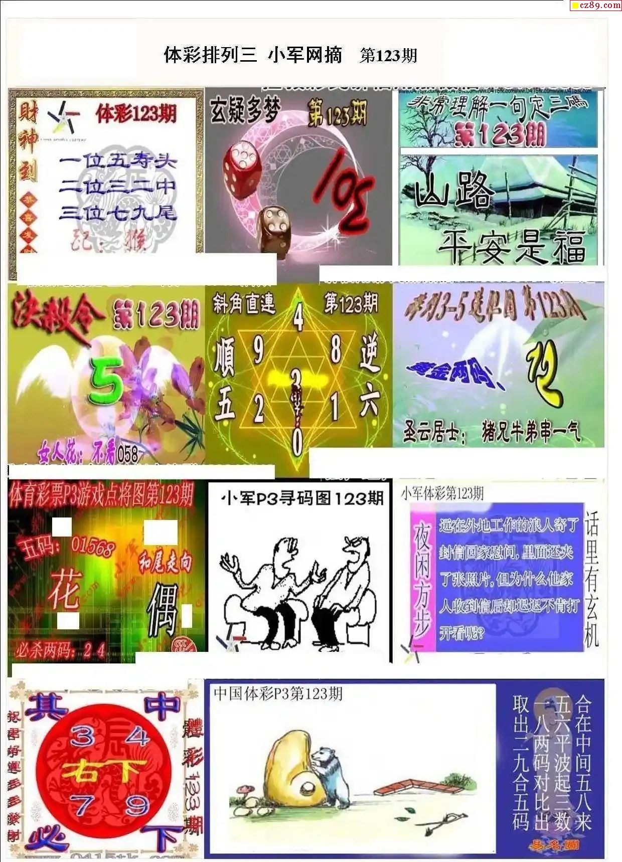 2025年123期牛彩网体彩P3画迷图谜汇总分享