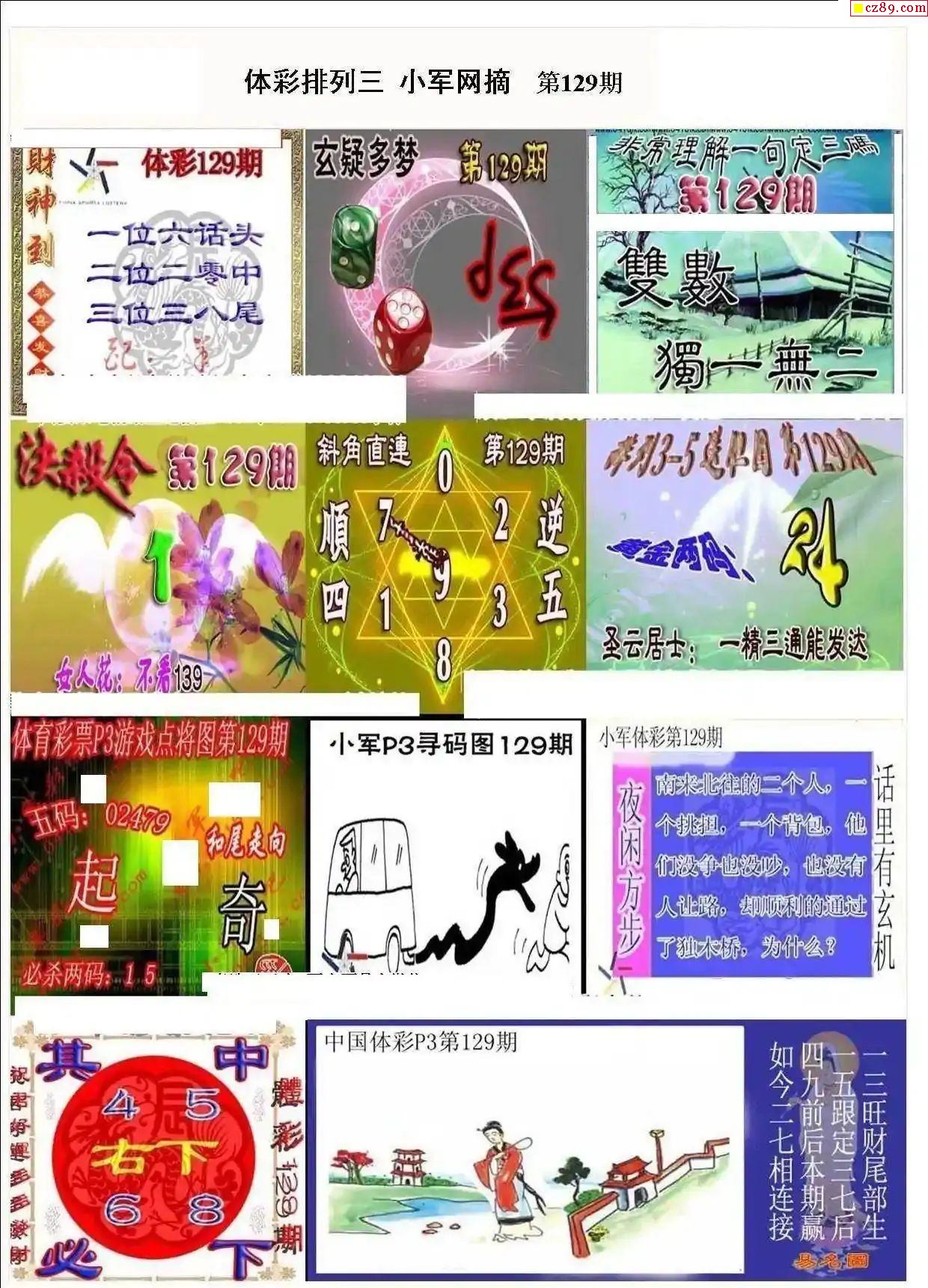 2025年129期牛彩网体彩P3画迷图谜汇总分享