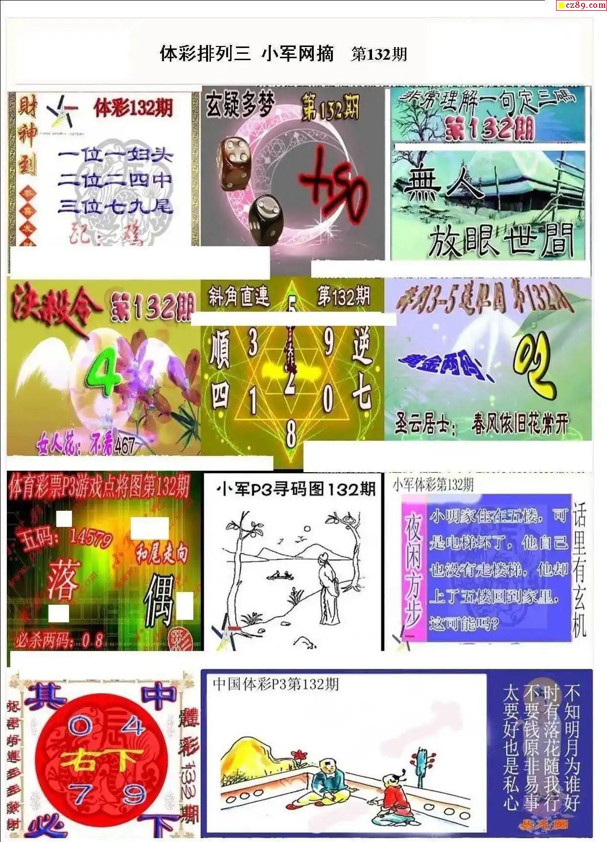 2025年132期牛彩网体彩P3画迷图谜汇总分享