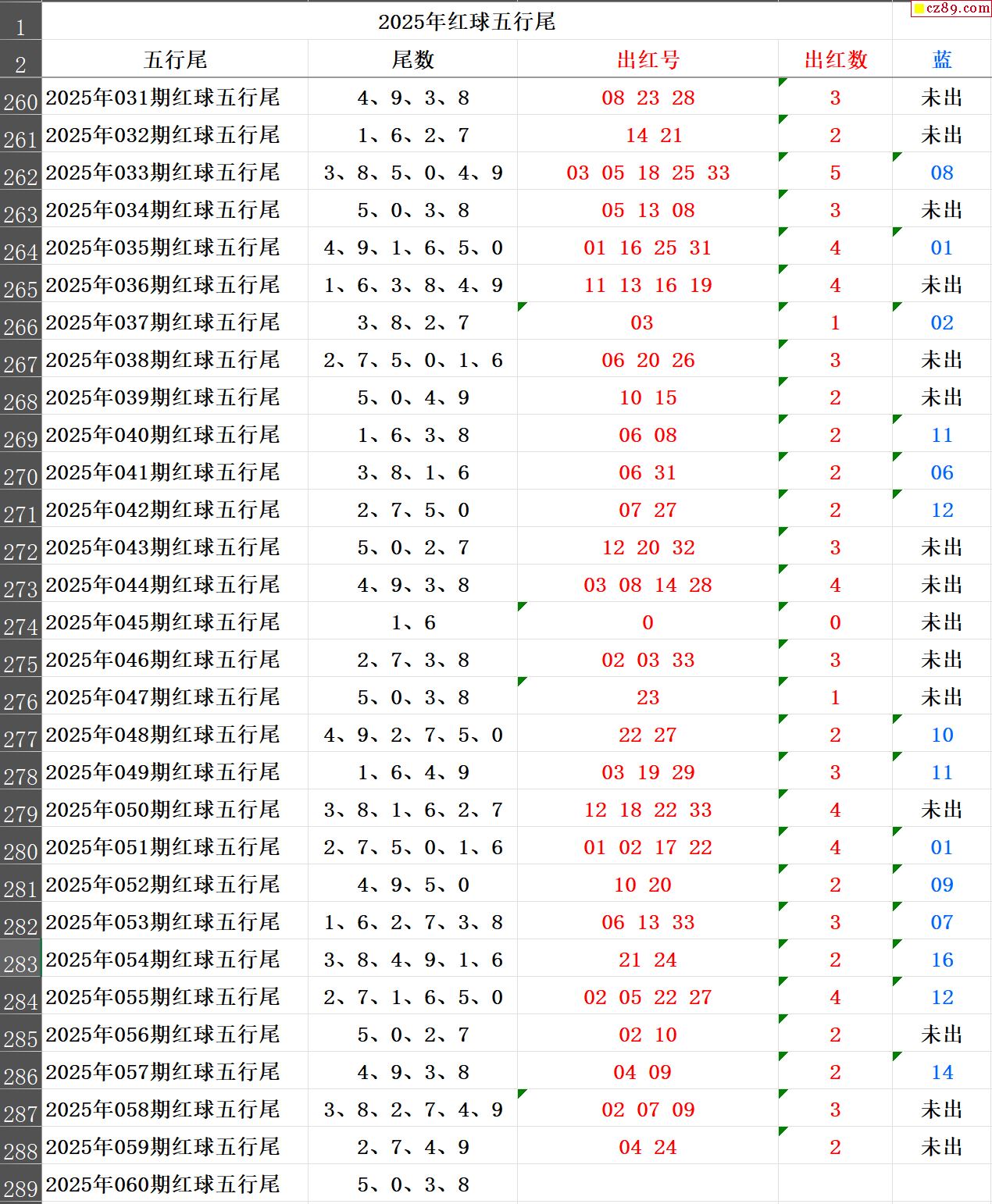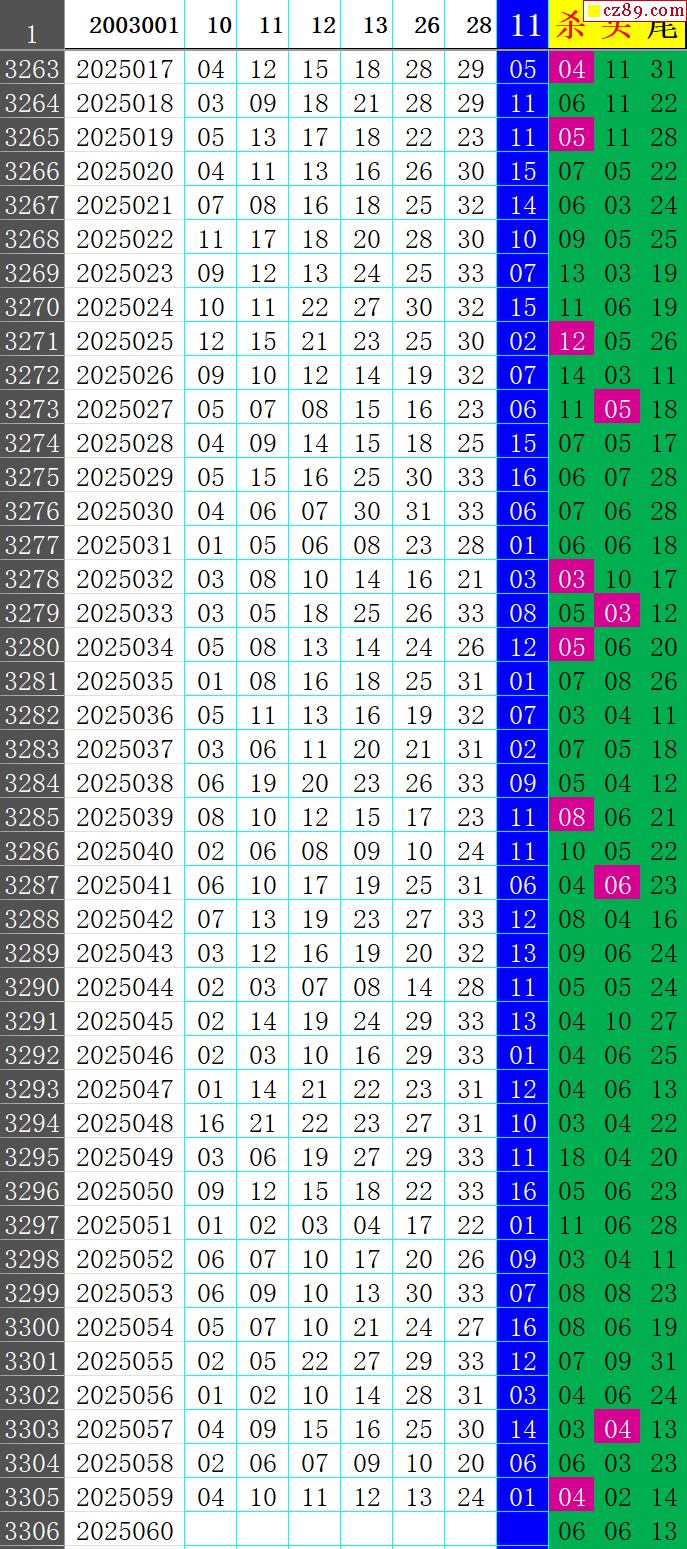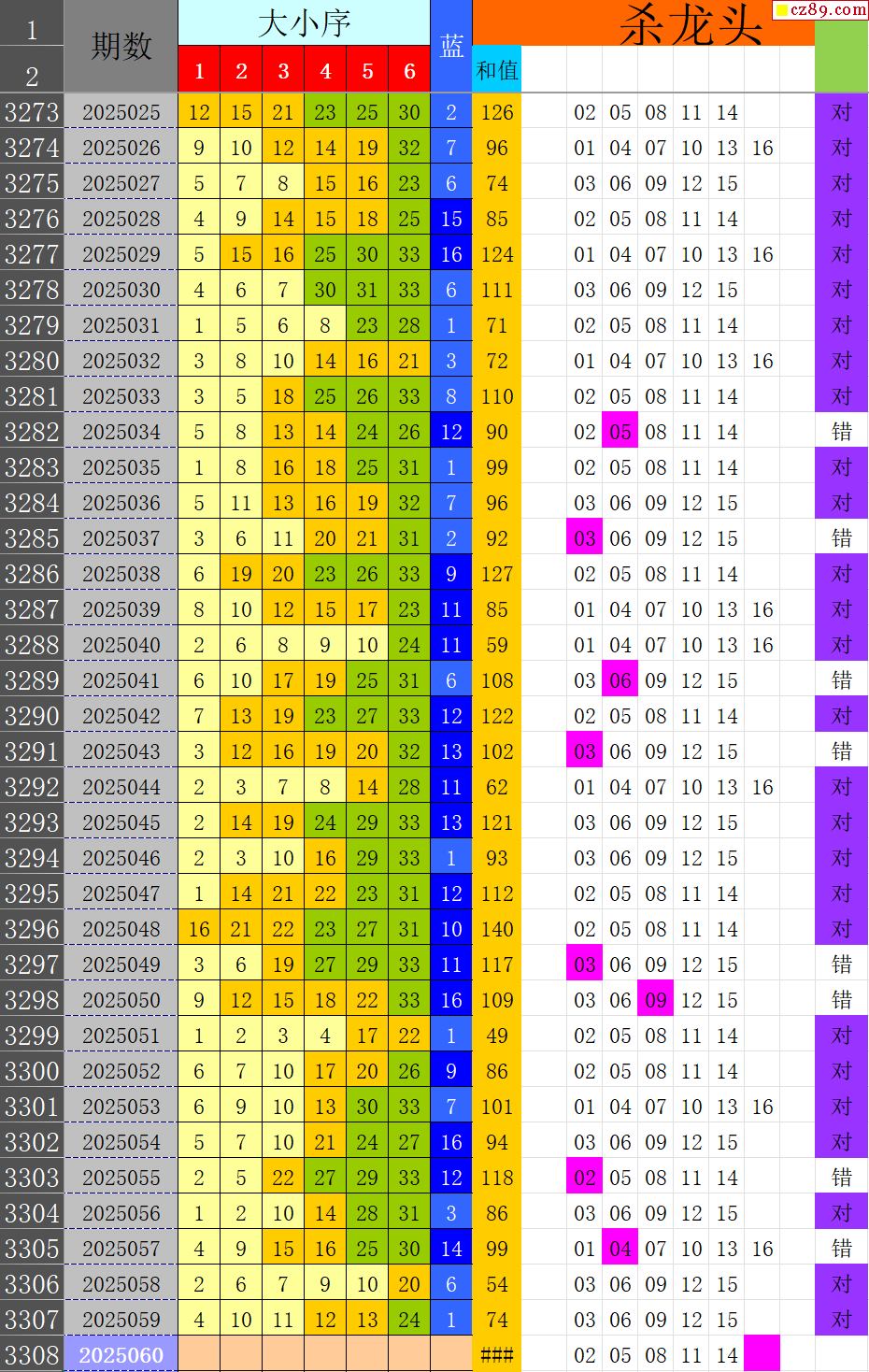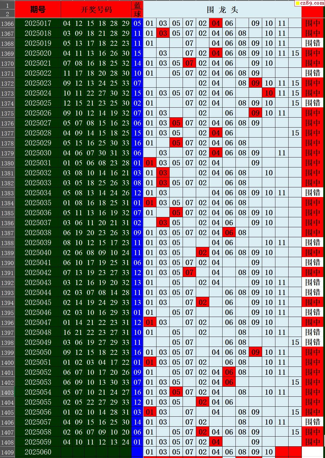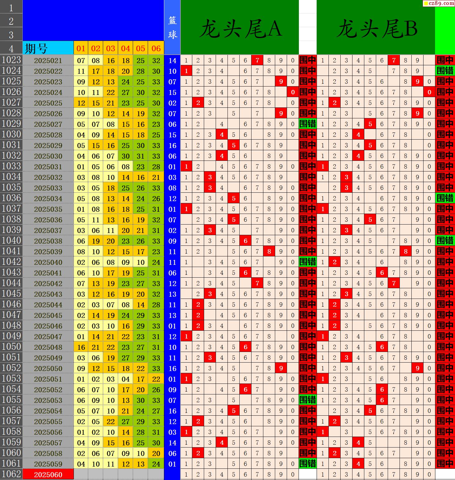 25年060期秋雨龙头凤尾走势图表