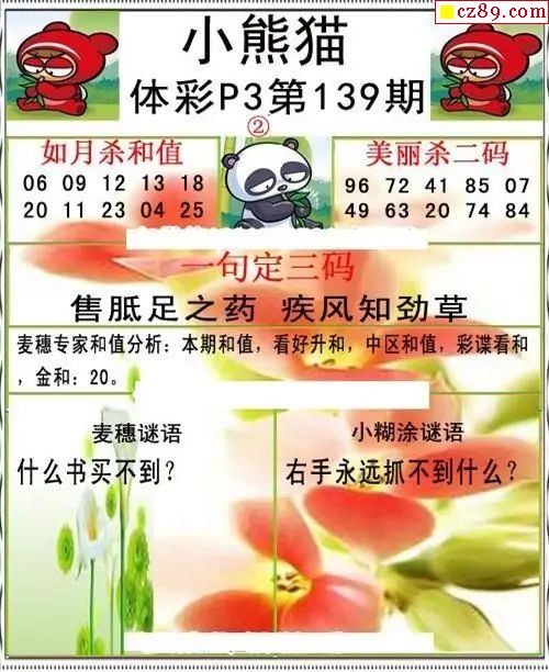2025年139期牛彩网体彩P3画迷图谜汇总分享