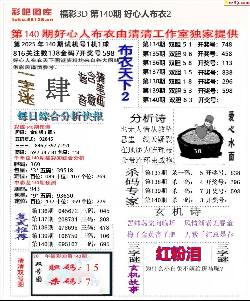 2025140期3d图谜汇总(五)