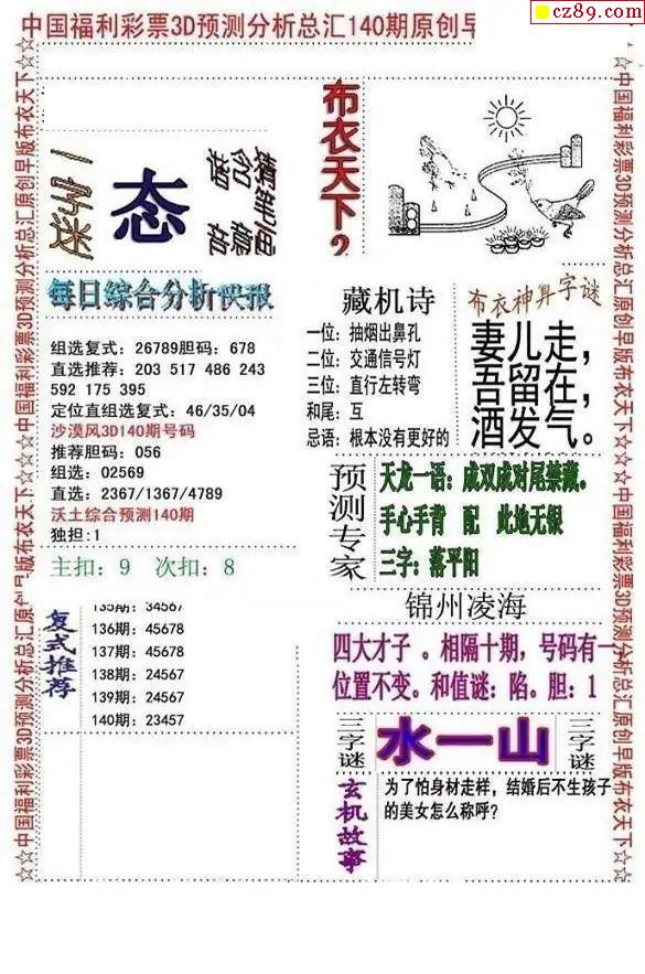 福彩3D2025331期 万家图谜三国胆拖杀图