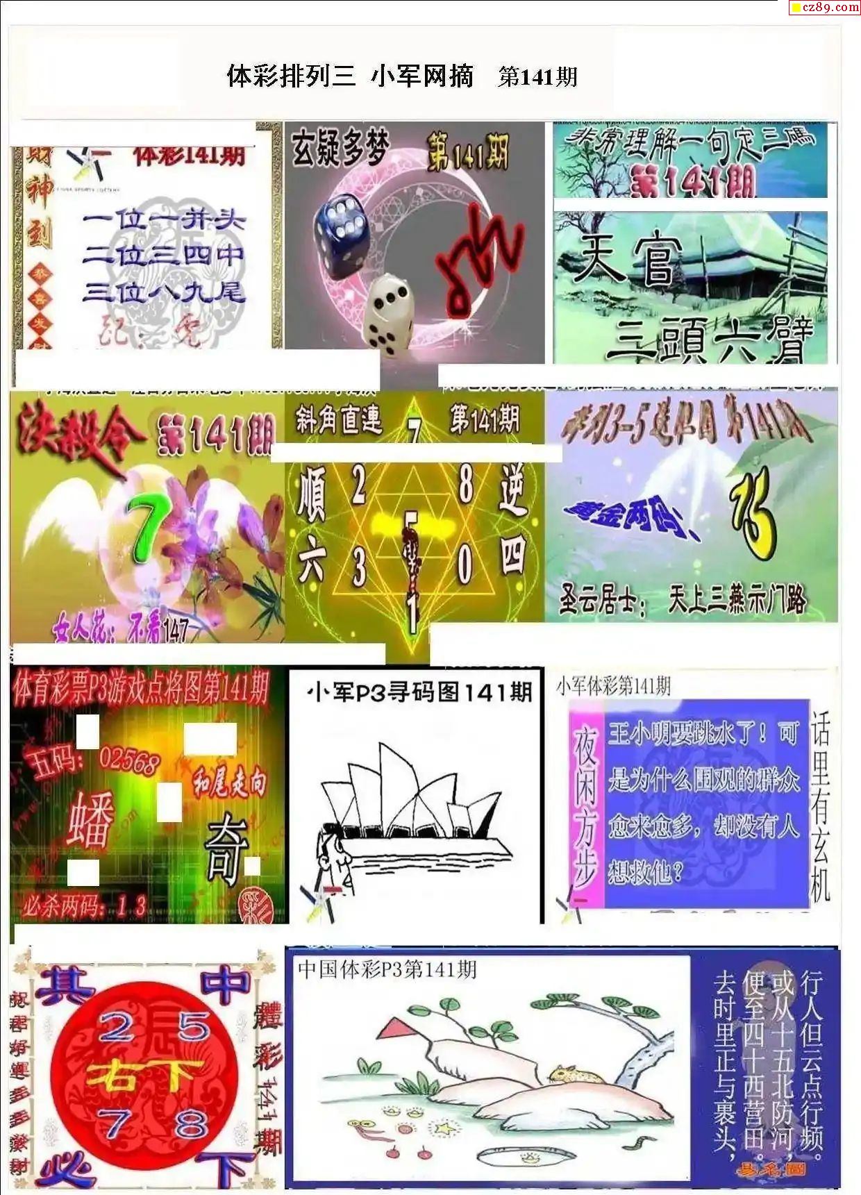 2025年141期牛彩网体彩P3画迷图谜汇总分享