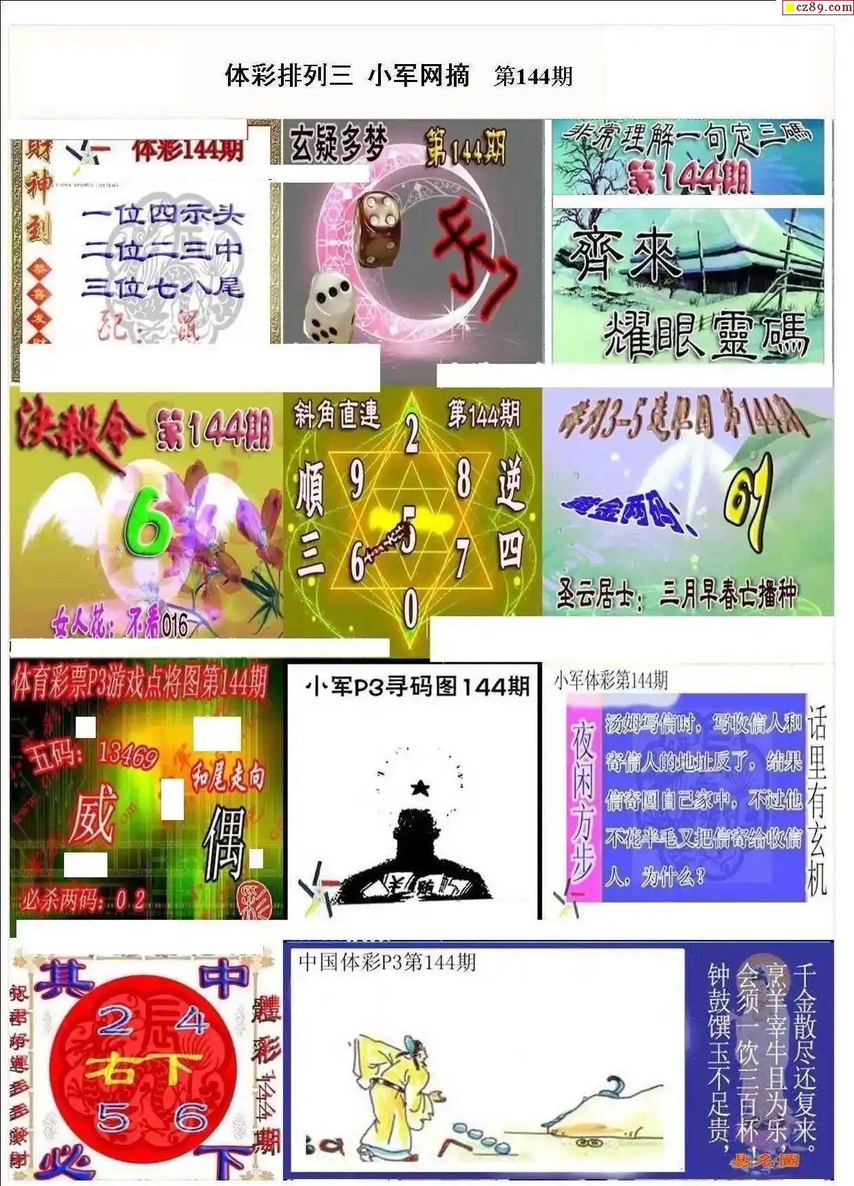 2025年144期牛彩网体彩P3画迷图谜汇总分享