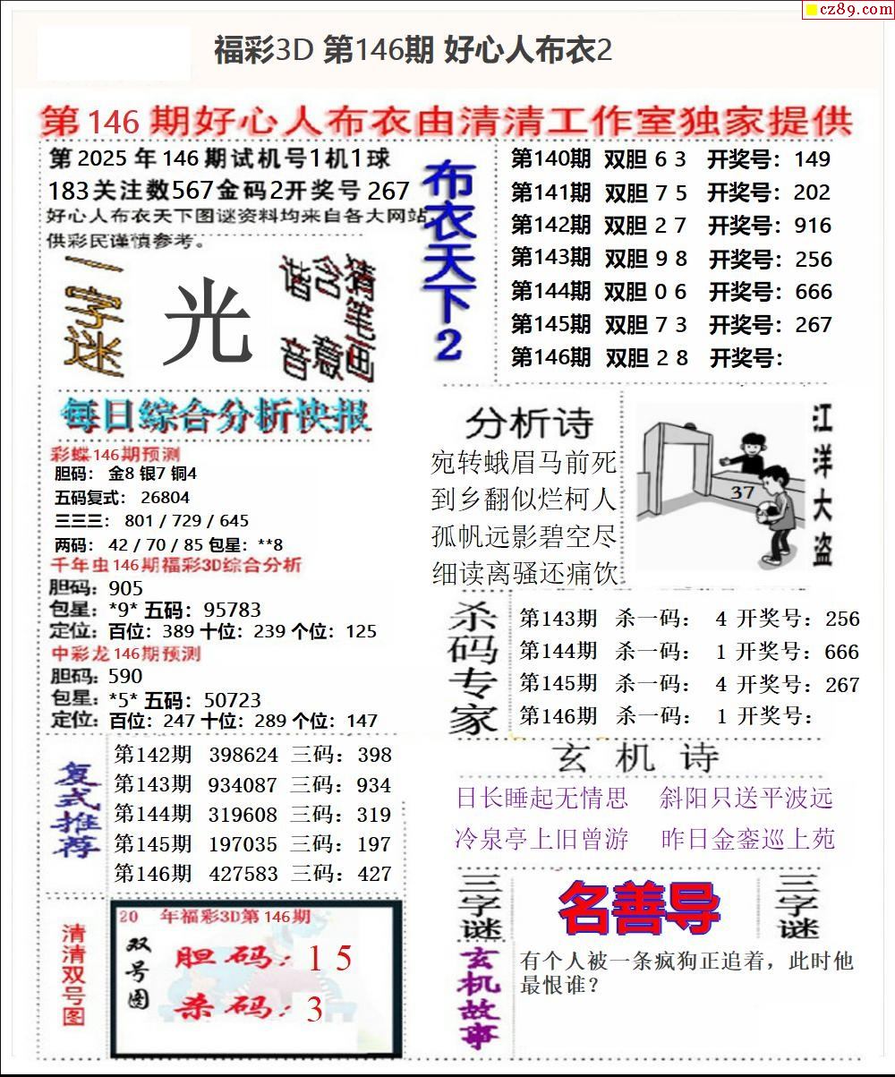 2025146期3d字谜图谜总汇