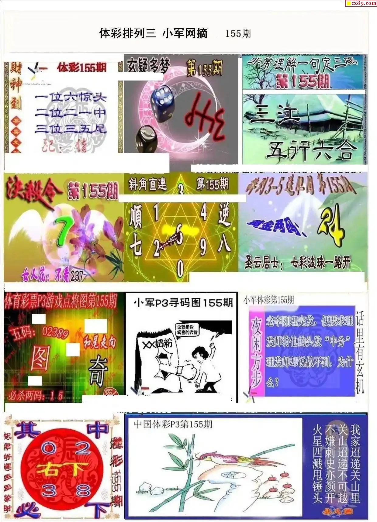 2025年155期牛彩网体彩P3画迷图谜汇总分享