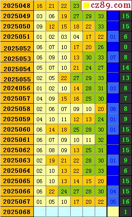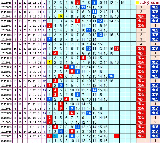 双色球2025068期阳光杀蓝汇总图表