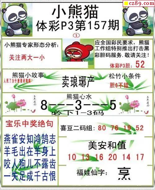 2025年157期牛彩网体彩P3画迷图谜汇总分享