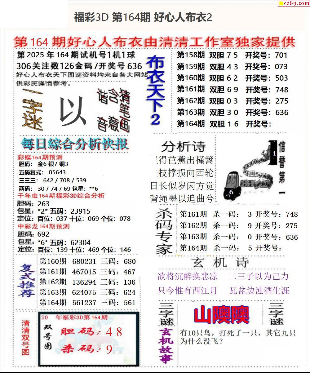 2025164期3d图谜汇总(五)