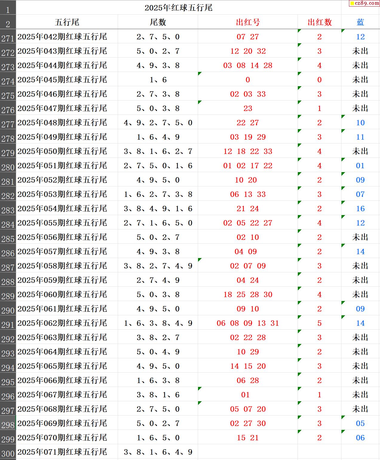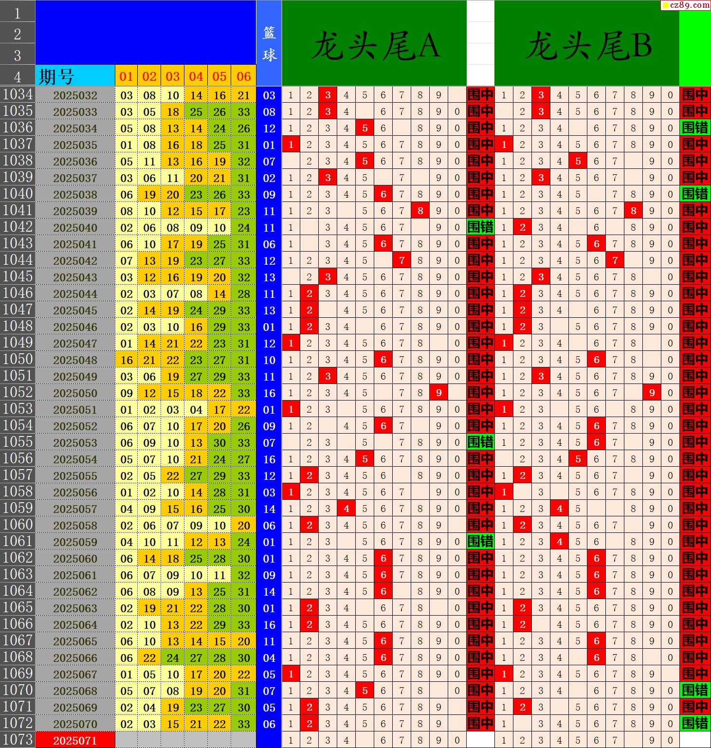 25年071期秋雨龙头凤尾走势图表