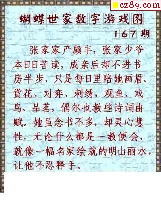 真蝴蝶世家2025167期3d图谜