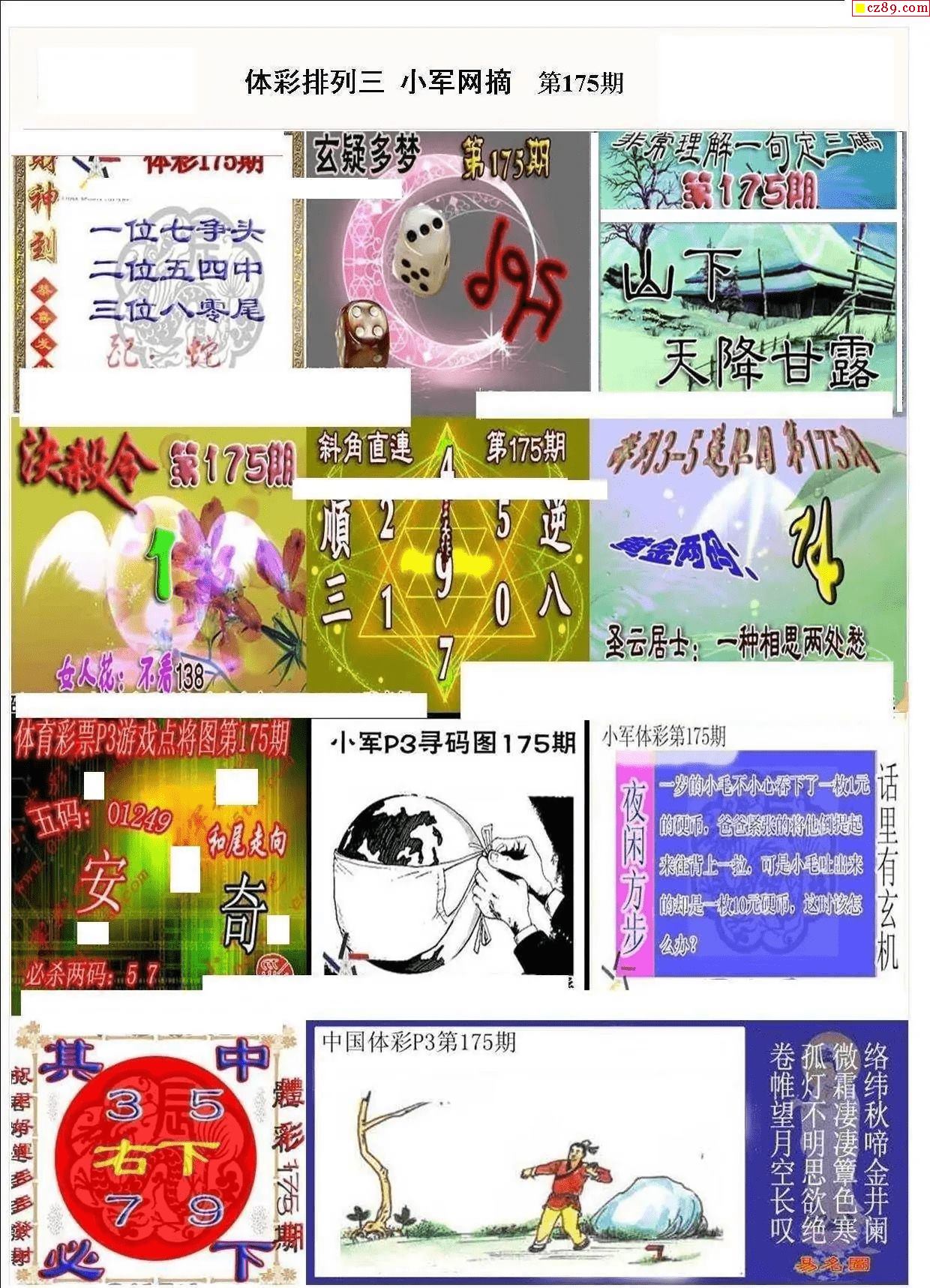 2025年175期牛彩网体彩P3画迷图谜汇总分享