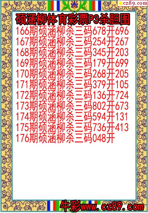 2025年176期体彩P3胆码杀码原创图总汇