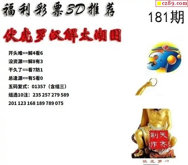 福彩3D2025334期 祁连牧哥百财纳福胆码图谜推荐
