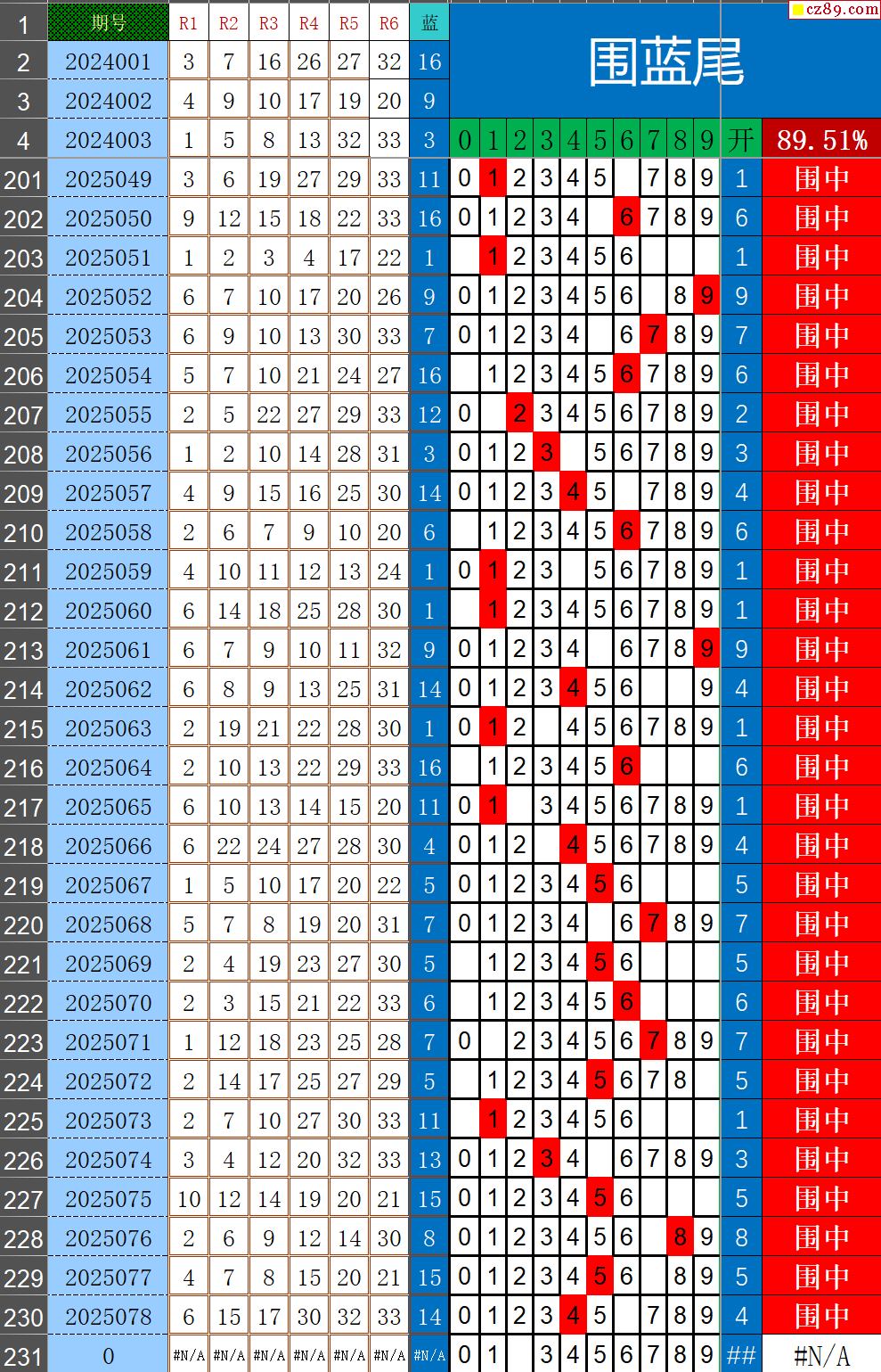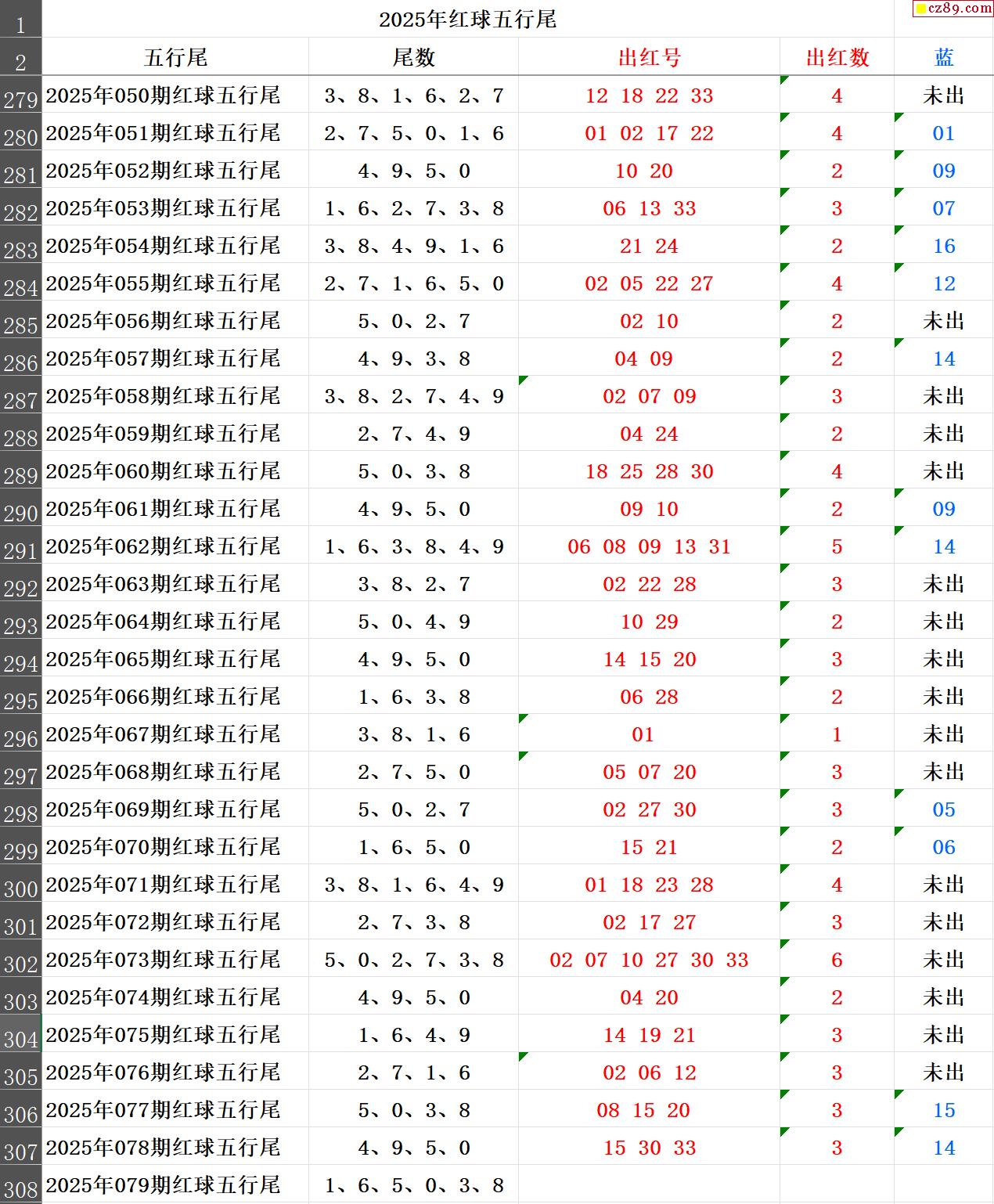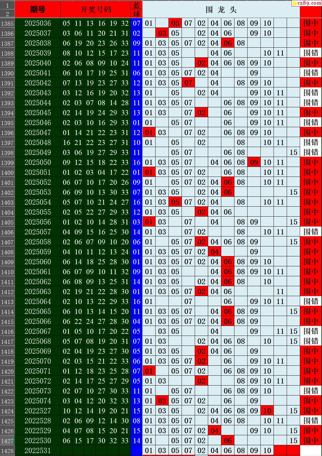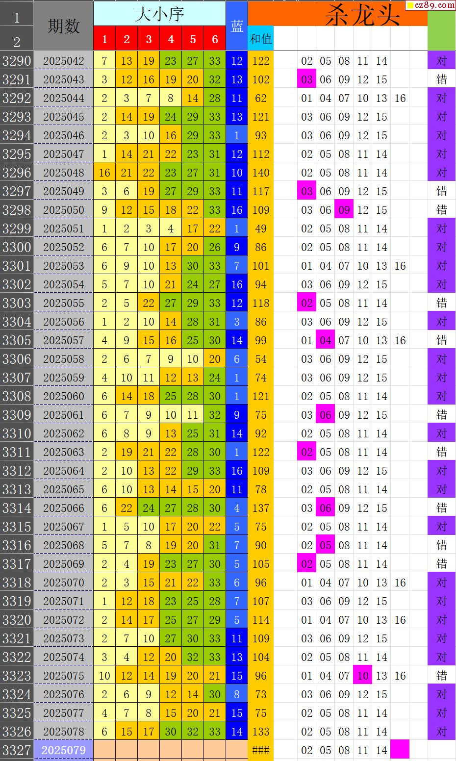 25年079期秋雨龙头凤尾走势图表