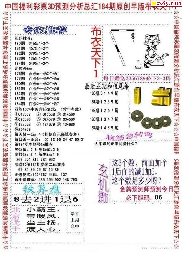 福彩3D2025332期 祁连牧哥百财纳福胆码图谜推荐
