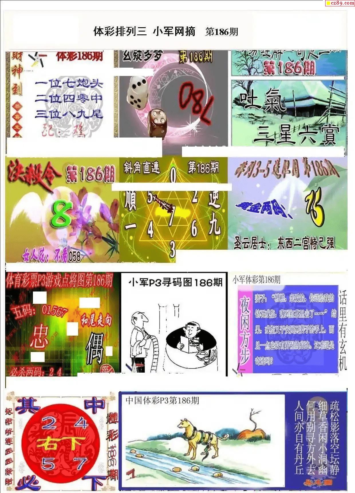 2025年186期牛彩网体彩P3画迷图谜汇总分享