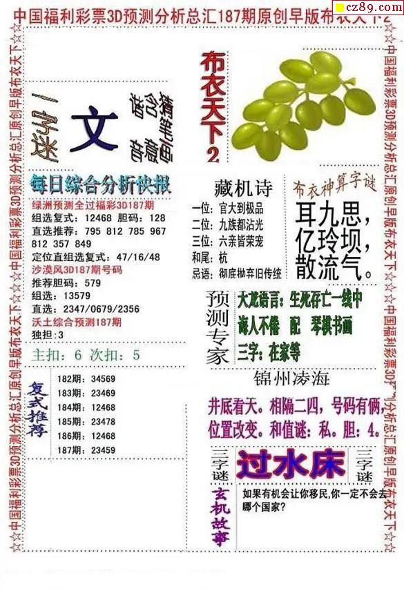 牛彩版3D字谜彩报图25年331期打印版