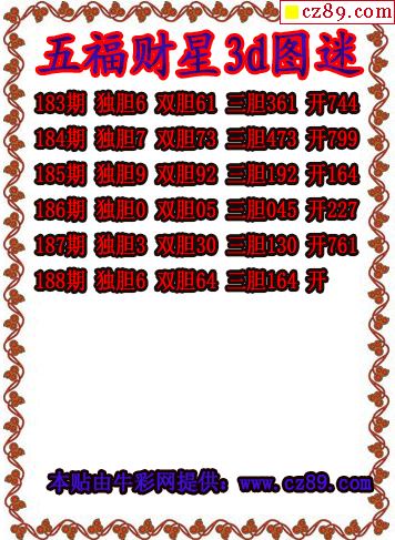 牛彩版3D预测彩报图25年330期打印版